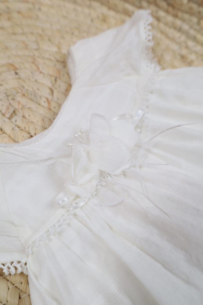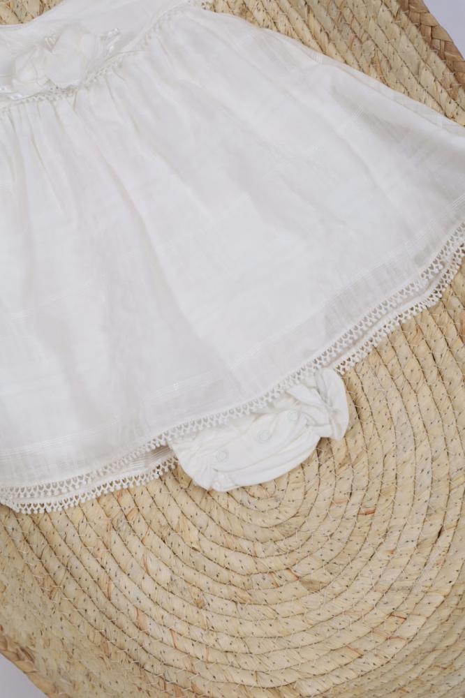 “فستان بناتي ناعم بتصميم أنيق وراقي يُبرز جمال الطفولة ببساطته وفخامته، مصنوع بعناية فائقة ليتناسب مع المناسبات الخاصة أو الإطلالات اليومية المميزة. يأتي الفستان بقماش خفيف الملمس، مزين بنقشات ناعمة مخططة منسوجة بشكل مدمج في القماش تضفي عليه مظهرًا فريدًا وراقيًا. تتميز القصّة بانسيابية أنثوية، مع ياقة عريضة مزخرفة بكشكش رقيق وحواف دانتيل ناعم يزين أطراف الأكمام والهامش السفلي للفستان لإضفاء لمسة تقليدية راقية. تتوسط الصدر وردة قماشية صغيرة تضيف لمسة من البراءة والرقي. يُرافق الفستان كلوت داخلي (بامبرز) مطابق ومريح يُكمّل الإطلالة بشكل مثالي ويمنح الطفلة حرية حركة وثقة. تصميم عملي وخفيف يلائم الأجواء الحارة، وخامات مختارة بعناية لضمان النعومة وسهولة اللبس. الطقم بجودة عالية ومن صناعة تركية، مع الحرص على أدق التفاصيل ليمنح صغيرتك مظهرًا ساحرًا وراحة لا مثيل لها.